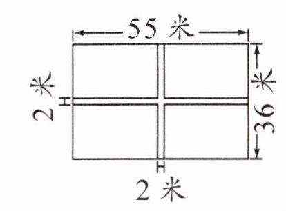 55 - 2=53(米) 36 - 2=34(米) 53×34=1802(平方米)
