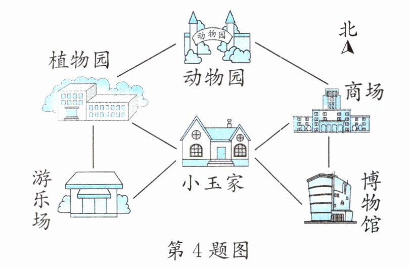 (3)小丽从动物园向( )方向走到植物园,再向( )走到游乐场。