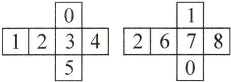 (3)用两个木块表示( )天。一个月最多有( )天,最少有( )天,而且两个( )、两个( )和两个( )不能写在同一个木块上,因为要用到两次。另外,6倒过来可以作为( ),加上( )六个数字,一共需要十二个数字,正好写在十二个面上。(填写如右图)