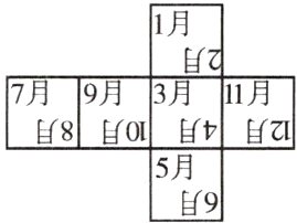 (1)用一个木块表示( )月到( )月,一个木块有( )个面,每个面上表示( )个月,一个正着写,一个倒着写,就可以表示出( )个月。(填写如右图)