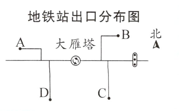 (3)小卓一家到大雁塔站附近游玩,他们想先去陕西戏曲大观园,从( )出口出地铁更近。