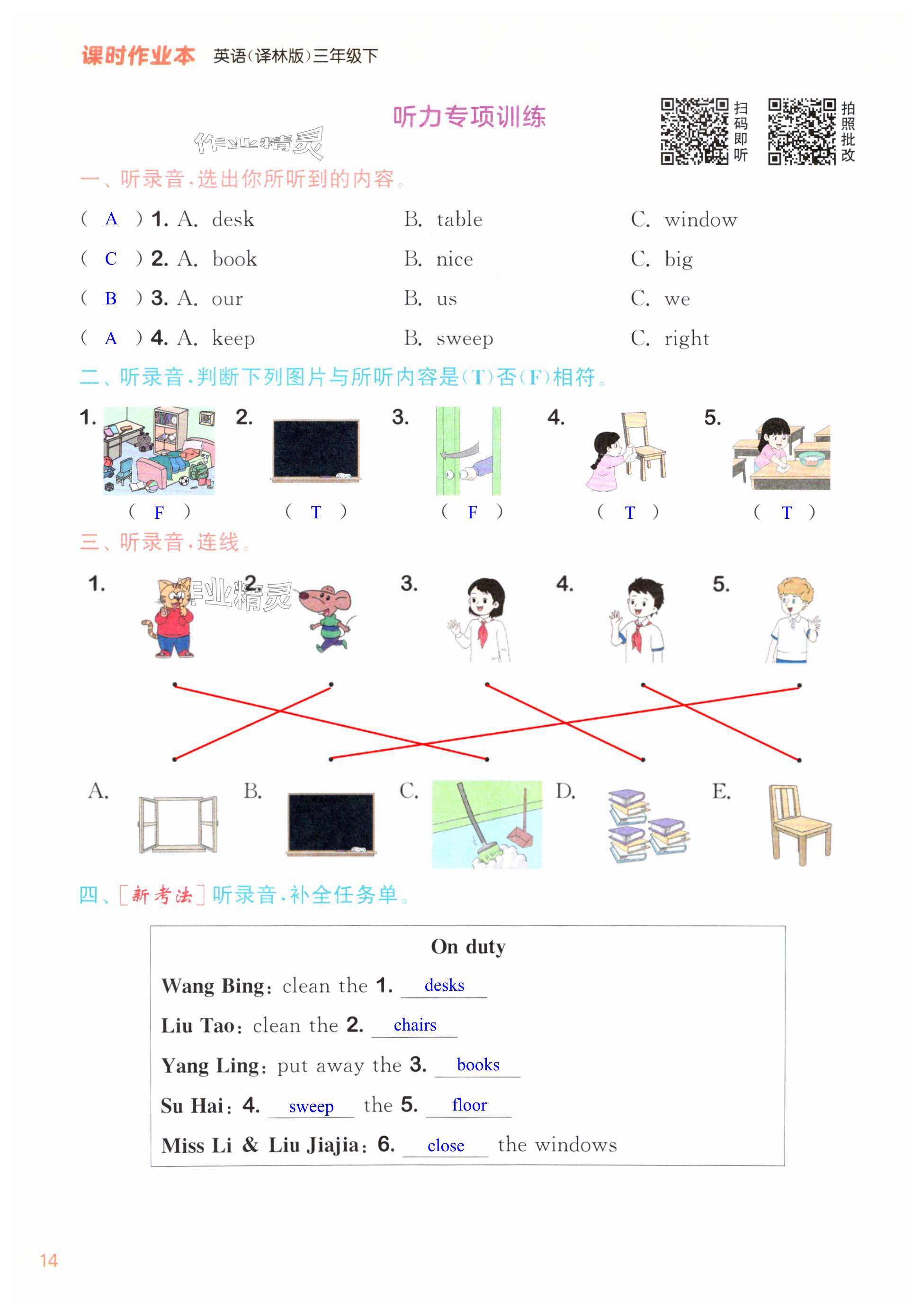 注:目前有些书本章节名称可能整理的还不是很完善,但都是按照顺序排列的,请同学们按照顺序仔细查找。练习册 2025年通成学典课时作业本三年级英语下册译林版苏州专版 答案主要是用来给同学们做完题方便对答案用的,请勿直接抄袭。