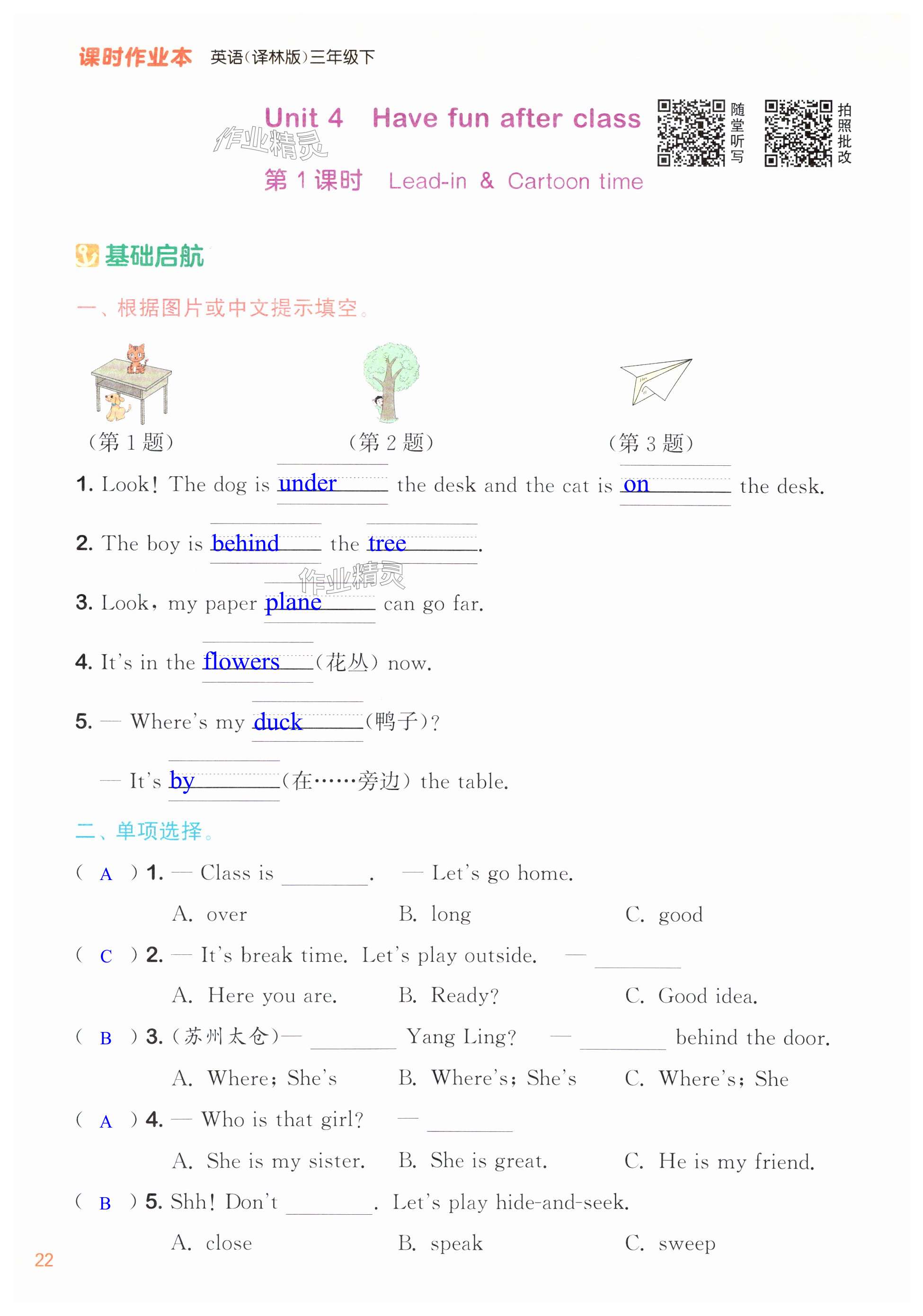 注:目前有些书本章节名称可能整理的还不是很完善,但都是按照顺序排列的,请同学们按照顺序仔细查找。练习册 2025年通成学典课时作业本三年级英语下册译林版苏州专版 答案主要是用来给同学们做完题方便对答案用的,请勿直接抄袭。