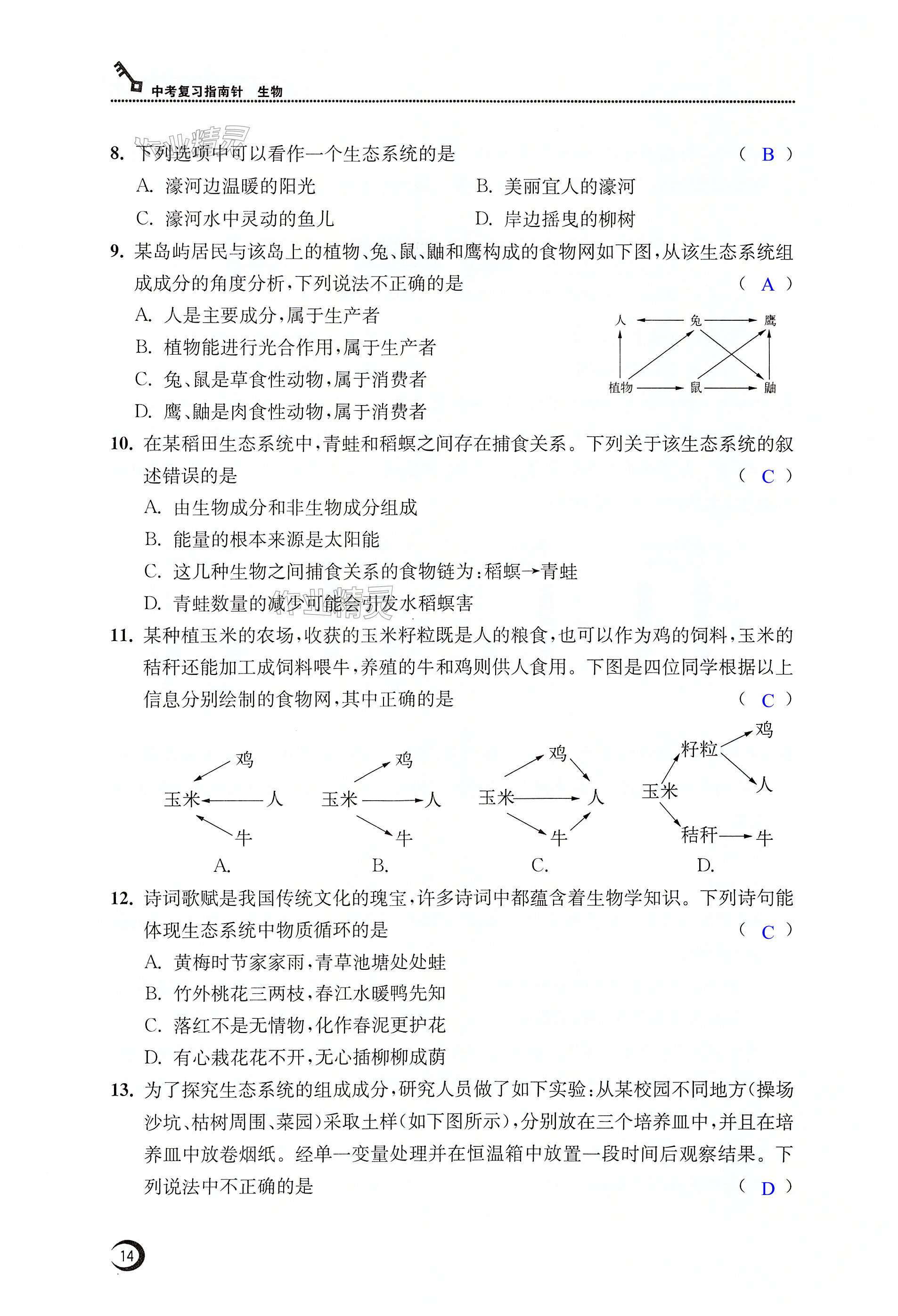 注:目前有些书本章节名称可能整理的还不是很完善,但都是按照顺序排列的,请同学们按照顺序仔细查找。练习册 2025年南通市中考复习指南针生物 答案主要是用来给同学们做完题方便对答案用的,请勿直接抄袭。