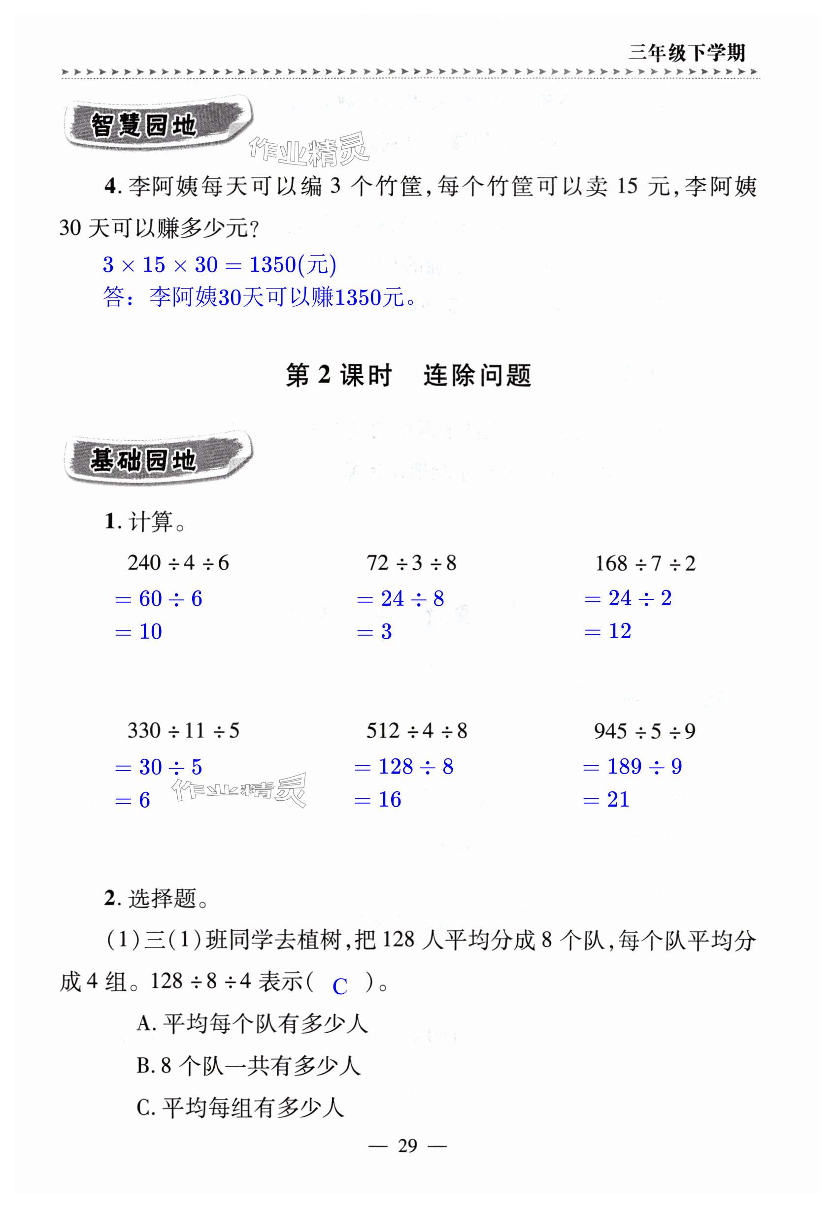 注:目前有些书本章节名称可能整理的还不是很完善,但都是按照顺序排列的,请同学们按照顺序仔细查找。练习册 2025年精练课堂分层作业青岛出版社三年级数学下册青岛版 答案主要是用来给同学们做完题方便对答案用的,请勿直接抄袭。