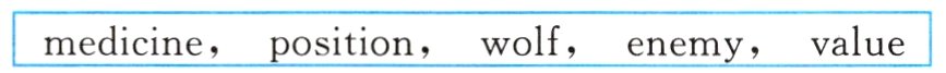 1.wolves 2.valuable 3.medical 4.enemies 5.position