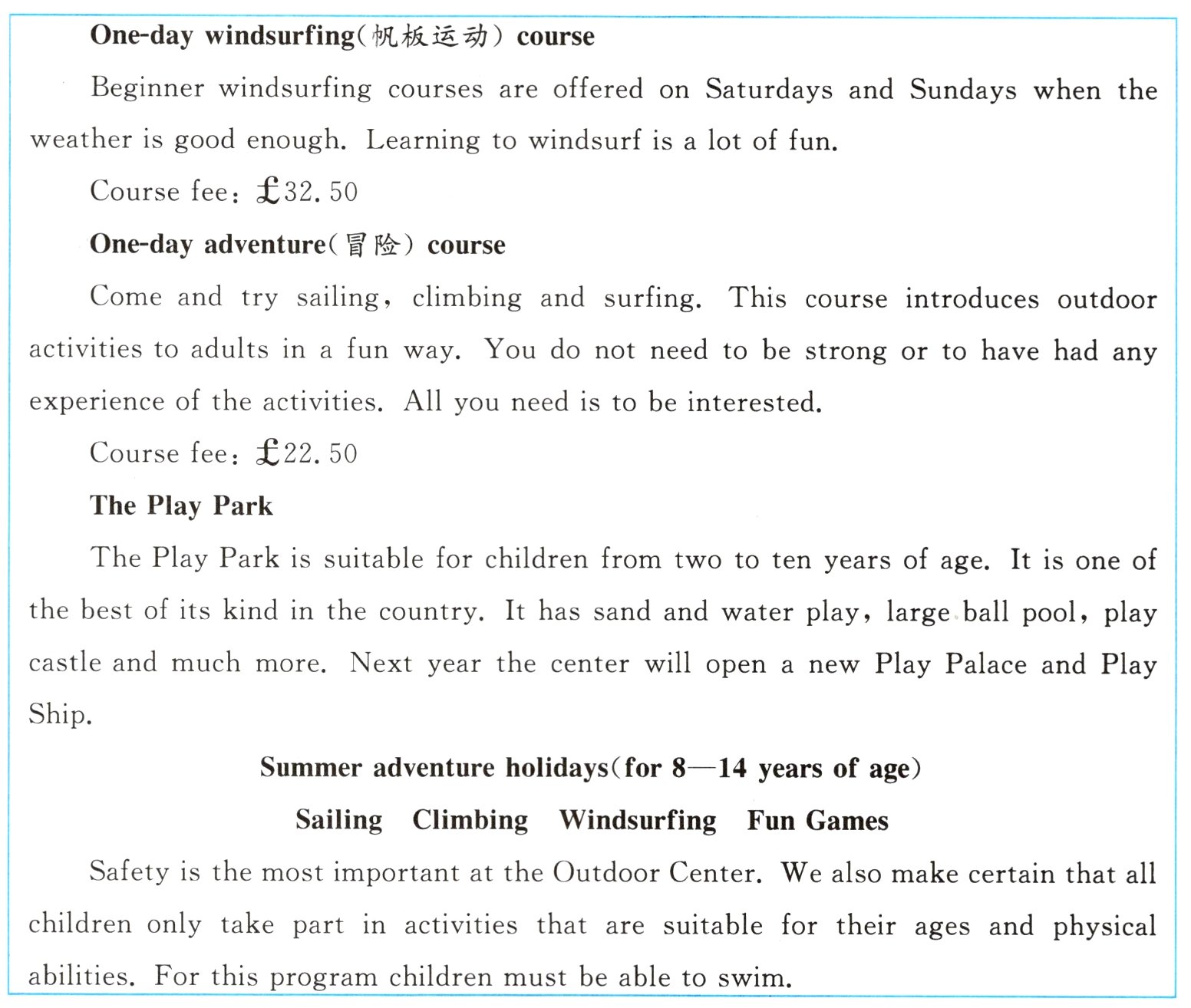 ( )3. Summer adventure holidays are open to children _______.
