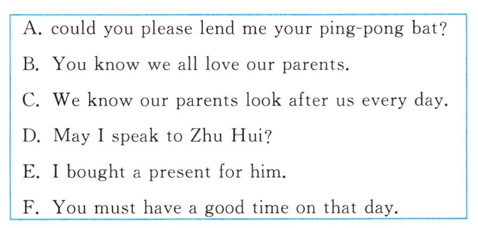 根据对话内容,从方框中选出五个适当的句子补全对话。(其中有一项为多余选项)