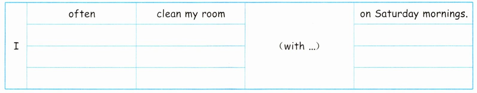 busy but happy@@I often clean my room on Saturday mornings. Then I go to the park with my friends. We often play football there. I usually read books and finish my homework on Saturday afternoons. I often go for a walk with my grandparents on Sunday mornings and then we go shopping. I sometimes help my parents wash clothes in the afternoon. I'm busy but really happy.