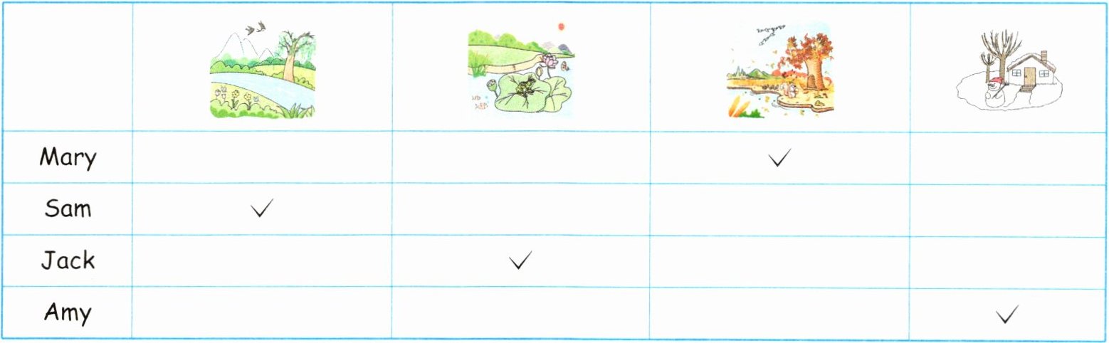 autumn@@I like spring best.@@Which season do you like best, Jack?@@I like summer best.@@Which season do you like best, Amy?@@I like winter best.