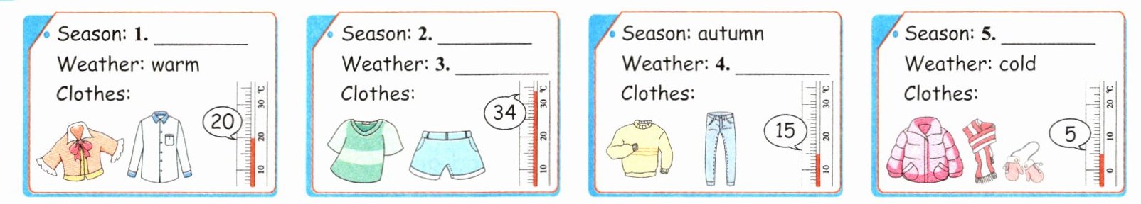 一 根据提示,补全季节信息卡。