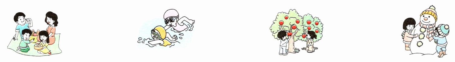 go on a picnic@@go swimming@@pick apples@@make a snowman