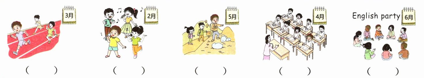 二、John 正在向朋友介绍自己学校这一学期的活动安排。听录音,给下列图片排序。