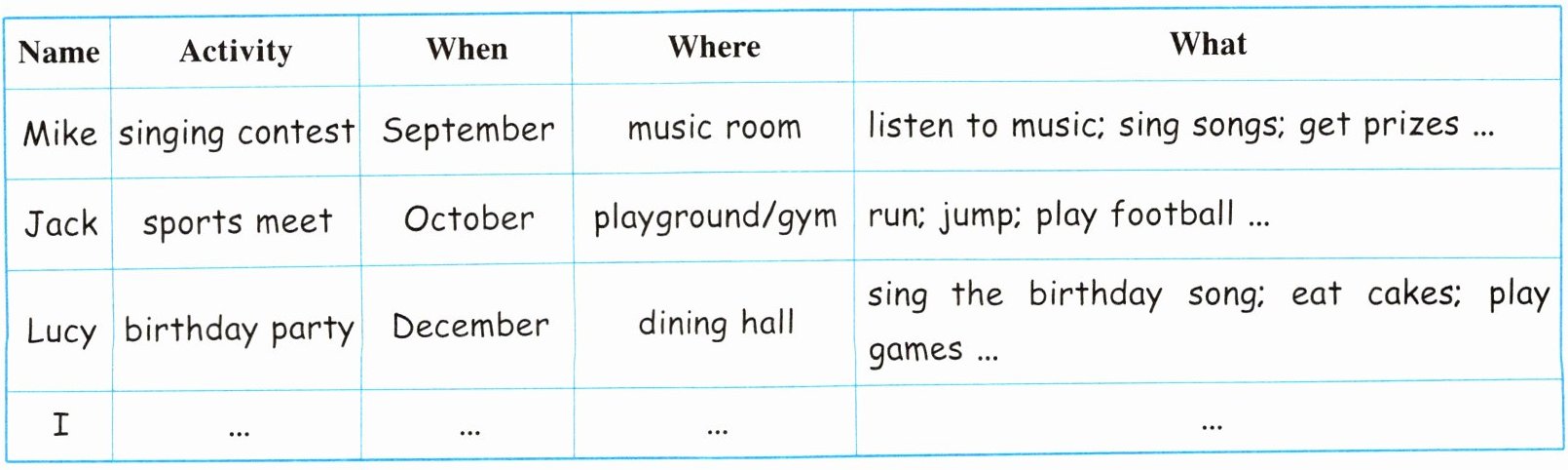 Mike正和同学们讨论各自喜欢的活动,请你也来加入吧!