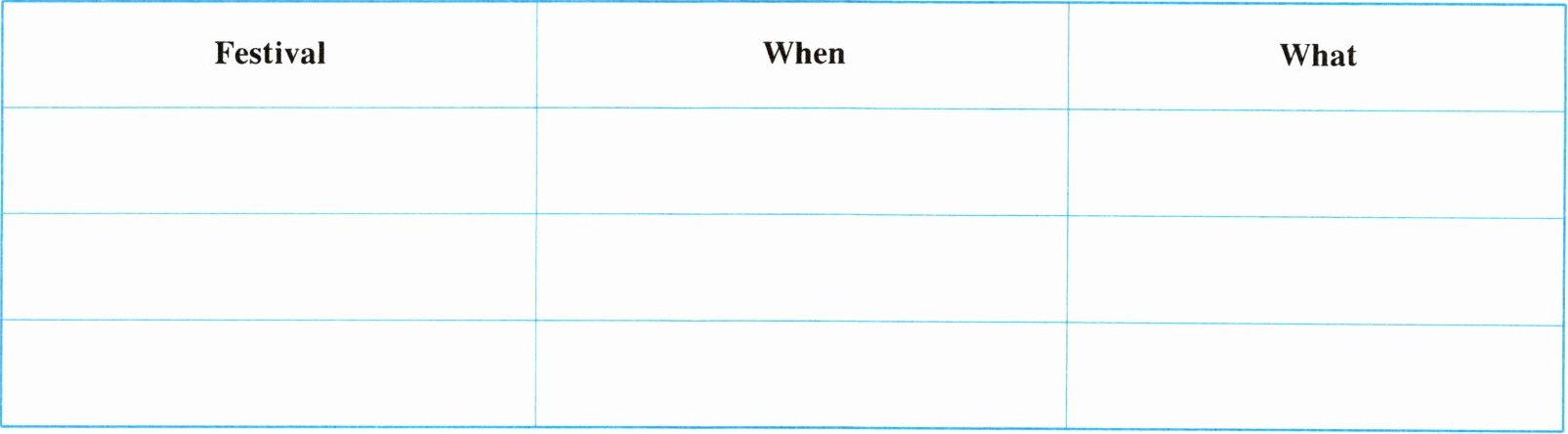Task 2:把大家最喜欢的节日整理成表格并策划活动。