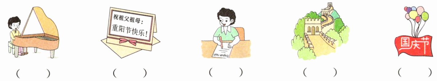 Hi! I'm Mingming. I'm busy in October. China's National Day is on October 1st. The English test is on October 16th. I'll play the piano for my mum on October 20th. That's my mum's birthday. The school trip is in October, too. We'll go to the Great Wall on October 24th. Double Ninth Festival(重阳节) is a traditional Chinese festival. It is on October 29th this year. I'll make a card for my grandparents. What a busy month!
