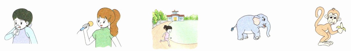 5. Look! The monkey is ____________ a banana.