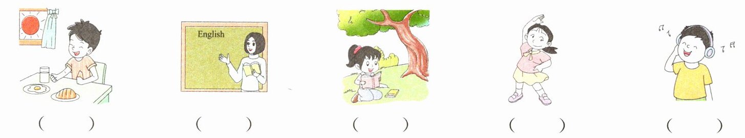 ( )1. It's 3:40 p.m. now. Peter is doing morning exercises.