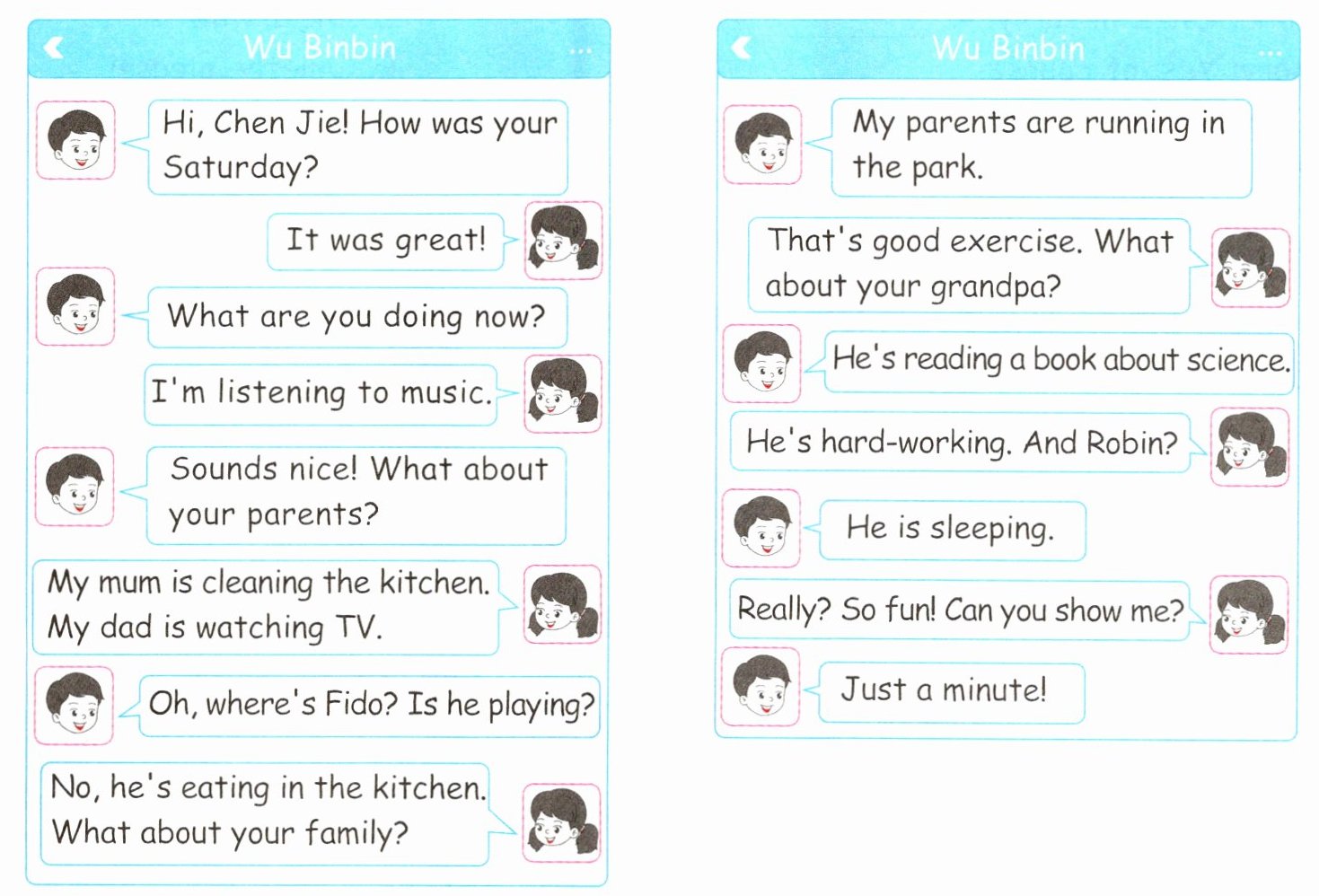 ( )1. It's Sunday. Wu Binbin's family are all at home.