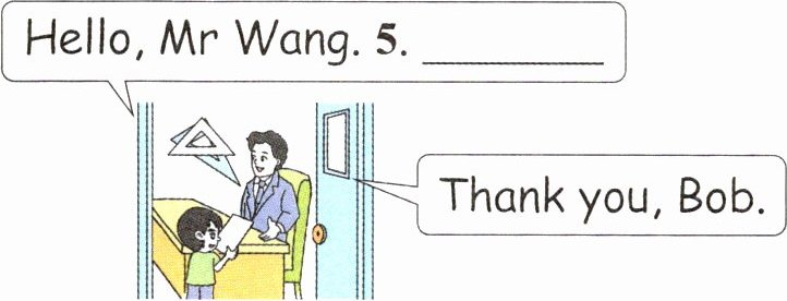 六 Bob 想去数学老师的办公室交作业,但是他迷路了。最后他找到了吗?根据情境,选择合适的句子,补全对话。
