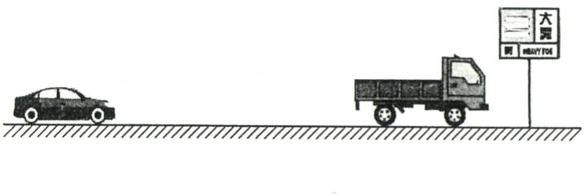 (3)若大雾之前的雨水天气导致该路段变得更湿滑了,使得轿车刹车过程中的加速度减小为原来的$\frac{5}{6}$,轿车司机在距离货车x₀ = 32.5 m处发现货车后,立即刹车的同时,不断向前方紧急鸣笛并按闪光灯提醒,货车司机在经过Δt = 1 s后接收到信号,并立即提速,使货车向前做匀加速运动,则其加速度至少多大才能避免相撞?