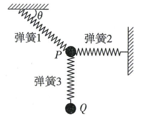 9. 将小球P和Q用轻弹簧按图示方式悬挂起来,系统静止时,弹簧1与水平方向的夹角为θ,弹簧2水平。已知P的质量为m,Q的质量为2m,重力加速度为g,下列说法中正确的是