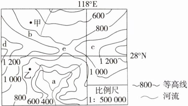 5. 为发展经济,计划在村庄甲、乙之间修一条公路,最合理的走向是经过( )