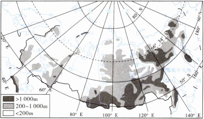 材料 西西伯利亚拥有5万平方千米世界上最大的泥炭地系统湿地,在西西伯利亚平原,发现了一片有多个湖泊和广阔河谷的沼泽。下图为俄罗斯示意图。