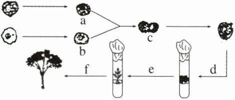 D. d、e、f过程表示植物的组织培养过程,e、f分别为脱分化和再分化