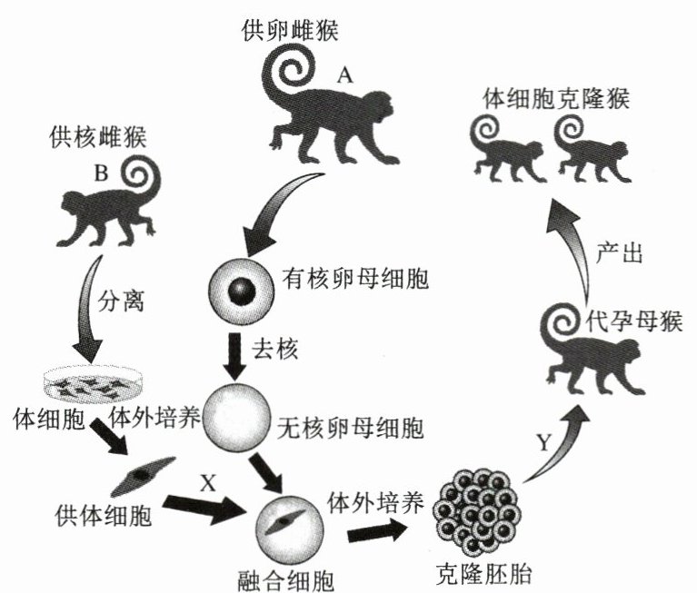 【典例】 中国科学家成功培育出全球首例体细胞克隆猴“中中”和“华华”。体细胞克隆猴的培育过程如图所示。
