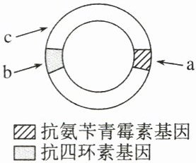 【典例2】 质粒是基因工程中最常用的载体,它存在于许多细菌体内。某细菌质粒上有标记基因如图所示,通过标记基因可以推知外源基因(目的基因)是否转入成功。外源基因插入的位置不同,细菌在培养基上的生长情况也不同,如图所示是外源基因插入位置(插入点有a、b、c),请根据表中提供的细菌生长情况,推测①②③三种重组后细菌的外源基因插入点,正确的一组是()