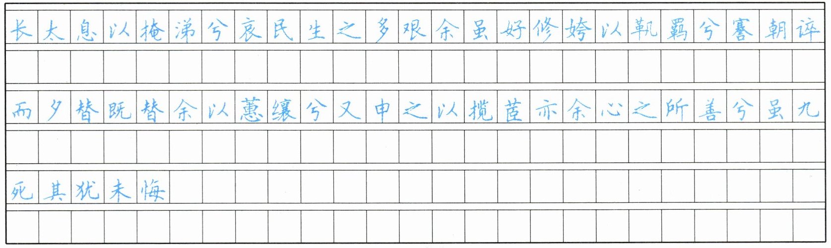 注意:①字体高度为2/3格子高,踩底线写,字体端正,少连笔;②笔芯用0.5的,不要用0.7和0.3的;③可先摹后临。