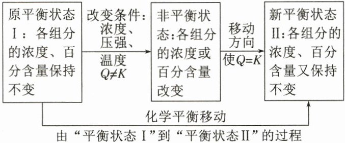 新平衡与原平衡相比,平衡混合物中各组分的浓度、百分含量发生改变。
