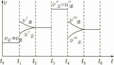 (1)t₁时刻,改变条件,v'₍正₎、v'₍逆₎均增大,且v'₍逆₎>v'₍正₎,平衡逆向移动,说明改变的条件是升高温度。t₃时刻,改变条件,v''₍正₎、v''₍逆₎同等程度增大,且该反应是反应前后气体物质的量不相等的反应,故改变的条件是加入催化剂。t₄时刻,改变条件,v'''₍正₎、v'''₍逆₎均减小,且v'''₍逆₎>v'''₍正₎,平衡逆向移动,说明改变的条件是减小压强。