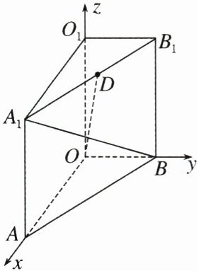 5. 在直三棱柱$ABO - A_{1}B_{1}O_{1}$中,$\angle AOB=\frac{\pi}{2}$,$AO = 4$,$BO = 2$,$AA_{1}=4$,$D$为$A_{1}B_{1}$的中点,在如图所示的空间直角坐标系中,求$\overrightarrow{DO}$,$\overrightarrow{A_{1}B}$的坐标。