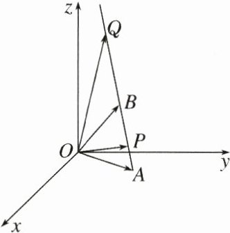 【例 1】 已知点 A(2,4,0),B(1,3,3),如图,以$\overrightarrow{AB}$的方向为正向,在直线 AB 上建立一条数轴,P,Q 为轴上的两点,且分别满足条件: