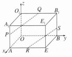 则$A(3,0,0)$,$B(0,4,0)$,$O_{1}(0,0,2)$,$A_{1}(3,0,2)$,$B_{1}(0,4,2)$,$E(3,4,0)$。易求得$P\left(3,0,\frac{4}{3}\right)$,$Q(0,2,2)$,$R(3,2,0)$,$S\left(0,4,\frac{2}{3}\right)$,于是$\overrightarrow{PQ}=\left(-3,2,\frac{2}{3}\right)$,$\overrightarrow{RS}=\left(-3,2,\frac{2}{3}\right)$。所以$\overrightarrow{PQ}=\overrightarrow{RS}$,所以$\overrightarrow{PQ} // \overrightarrow{RS}$。因为$R \notin PQ$,所以$PQ // RS$。