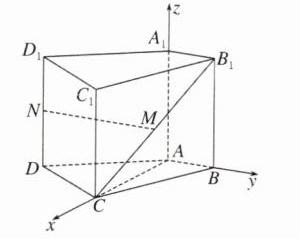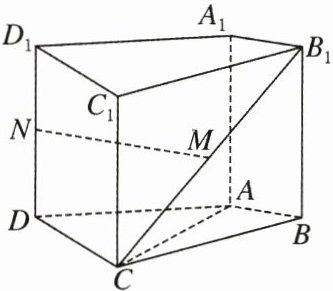 【变式训练】如图,在四棱柱$ABCD - A_{1}B_{1}C_{1}D_{1}$中,侧棱$A_{1}A\perp$底面$ABCD$,$AB\perp AC$,$AB = 1$,$AC = AA_{1}=2$,$AD = CD=\sqrt{5}$,且点$M$和$N$分别为$B_{1}C$和$D_{1}D$的中点。求证:$MN//$平面$ABCD$。
