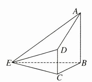 。则有 $C(1,0,0)$,$B(0,\sqrt{3},0)$,$E(0,-\sqrt{3},0)$,$D(1,0,1)$,$A(0,\sqrt{3},2)$。于是 $\overrightarrow{AE}=(0,-2\sqrt{3},-2)$,$\overrightarrow{DA}=(-1,\sqrt{3},1)$。设平面 $ADE$ 的法向量为 $\boldsymbol{n}=(a,b,c)$,则 $\begin{cases}\boldsymbol{n}\cdot\overrightarrow{AE}=-2\sqrt{3}b - 2c = 0\\\boldsymbol{n}\cdot\overrightarrow{DA}=-a+\sqrt{3}b + c = 0\end{cases}$,令 $b = 1$,则 $a = 0$,$c = -\sqrt{3}$,所以 $\boldsymbol{n}=(0,1,-\sqrt{3})$ 为平面 $ADE$ 的一个法向量。又 $AB\perp$ 平面 $BCE$,$OC\subset$ 平面 $BCE$,所以 $AB\perp OC$。因为 $BE\perp OC$,$AB\cap BE = B$,$AB,BE\subset$ 平面 $ABE$,所以 $OC\perp$ 平面 $ABE$。所以平面 $ABE$ 的一个法向量为 $\boldsymbol{m}=(1,0,0)$。因为 $\boldsymbol{n}\cdot\boldsymbol{m}=(0,1,-\sqrt{3})\cdot(1,0,0)=0$,所以 $\boldsymbol{n}\perp\boldsymbol{m}$,所以平面 $ADE\perp$ 平面 $ABE$。