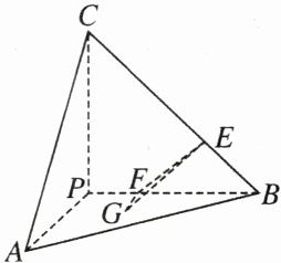 【例3】如图,在正三棱锥$P - ABC$中,三条侧棱两两互相垂直,$G$是$\triangle PAB$的重心,$E$,$F$分别为$BC$,$PB$上的点,且$BE:EC = PF:FB = 1:2$。求证:平面$GEF \perp$平面$PBC$。