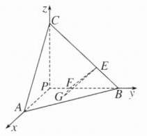 证法一:如图,以三棱锥的顶点 $P$ 为原点,以 $PA,PB,PC$ 所在直线分别为 $x$ 轴、$y$ 轴、$z$ 轴建立空间直角坐标系。