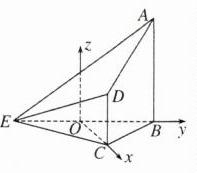 证明 取 $BE$ 的中点 $O$,连接 $OC$,因为 $AB\perp$ 平面 $BCE$,所以以 $O$ 为原点建立空间直角坐标系(如图所示)