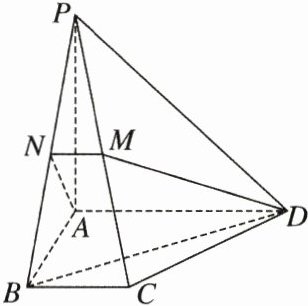 【例2】 如图,在四棱锥$P - ABCD$中,底面$ABCD$为直角梯形,$AD// BC$,$\angle BAD = 90^{\circ}$,$PA\perp$底面$ABCD$,且$PA = AD = AB = 2BC$,$M,N$分别为$PC,PB$的中点。