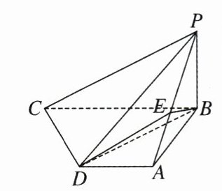5. 如图,在四棱锥$P - ABCD$中,$PB\perp$底面$ABCD$,$CD\perp PD$,底面$ABCD$为直角梯形,$AD// BC$,$AB\perp BC$,$AB = AD = PB = 3$。点$E$在棱$PA$上,且$PE = 2EA$。求平面$ABE$与平面$DBE$夹角的余弦值。