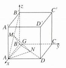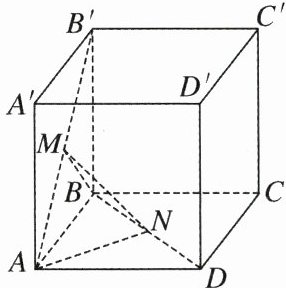 【变式训练】 如图,在正方体$ABCD - A'B'C'D'$中,$M,N$分别为$AB',BD$的中点,求平面$MNA$与平面$MNB$的夹角的余弦值。