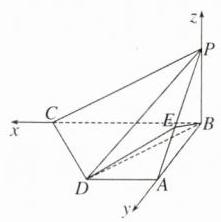 解:以$B$为原点,以直线$BC$,$BA$,$BP$分别为$x$,$y$,$z$轴建立如图所示的空间直角坐标系。