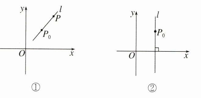 (2)如图②所示,过点 $P_0(x_0,y_0)$,倾斜角是 $90^{\circ}$的直线没有点斜式,其方程是 $x - x_0 = 0$,即______