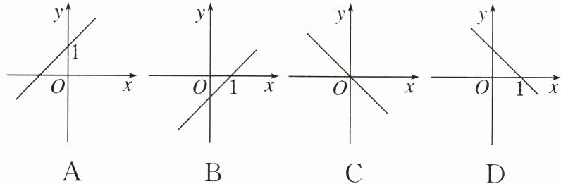 BD 解析 因为直线方程为 $y = kx + b$,且 $k \neq 0$,$k + b = 0$,即 $b = -k$,所以 $y = kx - k = k(x - 1)$,令 $y = 0$,得 $x = 1$,所以直线与 $x$ 轴的交点坐标为 $(1,0)$。