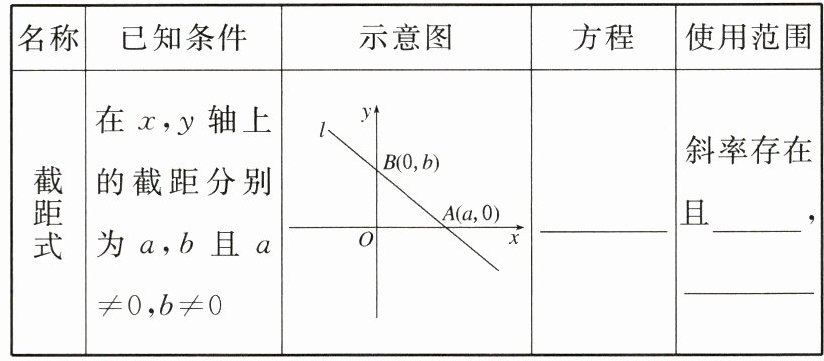 2. $\frac{x}{a} + \frac{y}{b} = 1$不为0,直线不过原点。