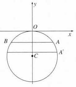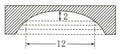 【例3】如图为一座圆拱桥的截面图,当水面在某位置时,拱顶离水面$2\ m$,水面宽$12\ m$,当水面下降$1\ m$后,水面宽为 m。